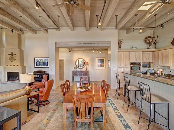 Maximize your quality of life in a peaceful setting with Galisteo Basin and Cerro Colorado views, clear skies, and a meticulously maintained, move-in ready home. This house has it all - warmth, style, and comfort with smart geothermal heating and solar energy that pays by generating it's own power and lowering utility costs, California Closets, on almost 7 acres with paved roads to the property. Natural light pours in the open, one-level floor plan designed for easy indoor/outdoor entertaining and living. Approximately 20 minutes to the Santa Fe Plaza and approximately 5 minutes to Eldorado's Agora and La Tienda with restaurants, grocery store, bank, and many other amenities. Create your sanctuary and enjoy breathtaking sunrises and sunsets in Lamy heaven!