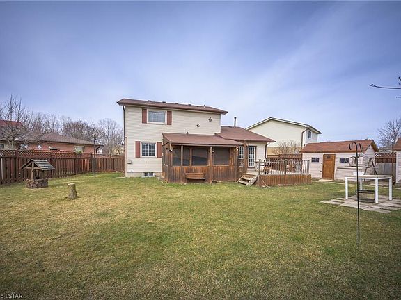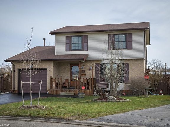 This wonderful family home has been lovingly maintained and upgraded over the years by its original owners! Located in south London, tucked away on a quiet court, situated on a large pie-shaped lot. You will find everything you are looking for and more with this 3 bedroom, 1 and a half bath two storey home with attached garage. Offering two living spaces on the main floor, with a spacious living room featuring large bay windows. Hard services through out. Dining and eat-in kitchen if you so choose. Den with french doors leading to an expansive backyard and deck with bonus sunroom, perfect for entertaining. The lower level has ample storage and can be updated to your liking. Windows and roof have been updated in the last ten years. Brand new owned hot water tank and freshly painted. Pride of ownership is clearly evident here, just move-in and enjoy! Close to all of London's great amenities, shopping, parks, schools and easy access to the 401.
