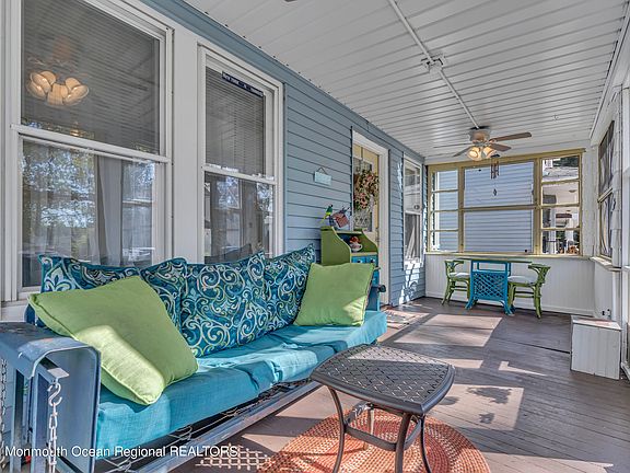 Absolutely Charming Home located on a Quiet Dead End Street and most importantly is NOT in a flood hazard zone~Enter through the Welcoming Enclosed Screened Front Porch which has removable insulated windows, tons of sunlight and is enjoyable all year~Cozy Living Room leads to Spacious Formal Dining Room with pass-through to Kitchen and mobile Center Island~Hardwood Floors throughout~Laundry Room off Kitchen and Powder Room completes the 1st Level~2nd Floor there are 4 bedrooms and a full Bathroom~3rd Level Walk-up Attic features 2 finished rooms (not heated) could be used for playroom, studio, storage or home office~Partial Basement+Crawl Space~Tankless Water Heater~Upgraded Boiler for HW Baseboard Heat~Located in the Heights of Keansburg-a Commuter's dream~Gorgeous Free Beaches~Call Today