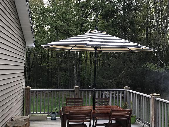 Pristine, open layout, 3-Bedroom 2 bath Split Level on 11.2 acres of scenic forest. Whether it's the upper level bedroom, the living room with cathedral ceiling and lots of natural light, the middle level with the dining room, kitchen w/custom cabinets, granite counters, range w/double oven, tile floor and a door to the private 12 x 31 rear deck, another bedroom and a full bath or the lower level Master Area with lots of closets a separate sitting room and full bath, you will be glad to call this home! The entire home has been totally remodeled over the last 10+ years to include the new 2 story addition with radiant heat in the lower level, there is a basement under the original part of the house with a wood stove, laundry area and storage. Although there is no "garage" there is a 30' x 40' drive through pole barn w/concrete floor, large enough for all your needs. The property is a corner lot with beautiful stone walls and lots of road frontage.