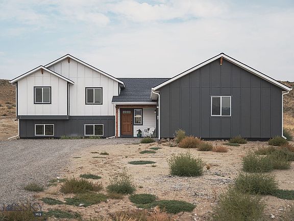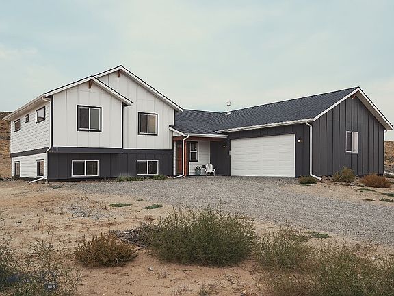$25k Price Reduction! CURRENT LOAN IS an ASSUMABLE VA MORTGAGE at 2.65% (+/-) FOR QUALIFYING BUYER!! Built in 2021, this barely lived in, 3 bed, 3 bath, tri-level home sits on 5.266+/- acres in Milligan Canyon! Easy access to I-90, while tucked away from traffic noise. The well-designed floor plan utilizes open spaces combined with great storage. Lot placement maximizes big sky views and critter sightings. Extra windows bring the outside inside. Upgrades and amenities include a large foyer, circle sewn hardwood floors, quartz counters, stainless appliances, custom cabinets, vaulted ceilings, gas fireplace, owner's suite with walk-in closet and 3/4 bath, mudroom, oversized 2-stall garage with storage above, and A/C-ready. The lowest level is ready to make your own with a full bath roughed-in, family room, and 2 additional bedrooms waiting to be finished. BUILT ON HELICAL PIERS. Claim this lovely home on 5.266+/- acres!