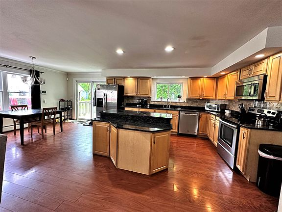 PRICE REDUCTION! Open concept living room/kitchen/dining room. Gorgeous kitchen with stainless steel appliances, granite countertops, beautiful hardwood cabinets and island. Additional family room at the front of the house great for an office/gym/playroom. 3 bay garage and oversized yard. Large deck off the back of the home within the fenced in portion of the lot. Remodeled bathrooms and kitchen, laminate & tile flooring, new roof, new windows, patio doors all within the last few years! Just move in and make it your own!
