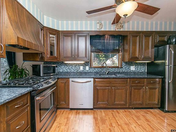 A truly unique opportunity in the heart of Delmar! Zoned a 2-family, perfect for in-law or investment. Set back from the road with plenty of parking, 2-car garage and backyard privacy with in-ground pool. Updated kitchens with granite, new appliances. Lovely bay windows. Main unit has gas fpl, 3 beds and 2 new bathrooms, one with stunning soaking tub. 2nd unit hosts 2 beds and 1 updated bathroom. Finished basement with family room, half bath, laundry. New roof and furnace. Generac whole-house generator.
