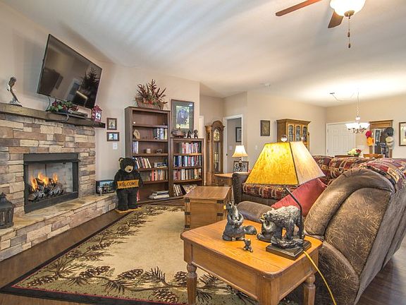 Sit, Relax and Enjoy your Lake View!! Year old Immaculate Custom built Cutie. Huge Master with oversize walk in. Separate 260 ft Man Cave. Has Garden Area, Hot Tub and is in a wonderful Small Community. Low Maintenance Home. Newly fenced in yard installed 2023, whole house generator installed 2023, brand new HUGE metal building (shop) 36x42 2 roll up doors and one walk in door with windows. New driveway to shop and plenty of parking. Walk-in storage under the front porch 14x50x14. And tons of storage under the house crawl space is from 4 foot to 14 foot ceiling height. New paint in and out of house. Wooden play set in yard for the kiddos. Plenty of room to play. Porch perfect for decorating.