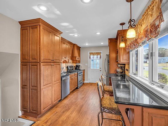 This is the one you've been waiting for. 4 Bedroom , 1.5 Bathrooms. Updated Kitchen with Custom Cabinets, Granite Counter tops, Tiled backsplash, and upgraded LG S/S appliances. Main Bathroom is updated. Hardwood Floors throughout the 2nd and 3rd floor. Amazing large Family room 15 x 26' with Gas fireplace, Cathedral Ceiling with 6 Skylites, Recsssed Lighing, Buit-in Bar & Sliding Glass Doors leading to Deck. Lower level has a Den with a Pellet Stove, 4th BR with 2 Dbl Closets, 1/2 Bath, and access to a Beautiful Paved Patio with Gazebo, and Newer Hot Tub. Included Recessed Lighting, Bow Window, Exterior soffit Lighting, Newer Siding, Whole House Fan. Custom designed paved Patios with Lighting, and Stone Firepit. A must see! Enjoy a Graceful Lifestyle in your own Backyard Oasis. Peaceful and relaxing. Close to NJ Transit for an easy NYC commute. Quick access to the GSP, and close to shopping. The home is in move-in condition.