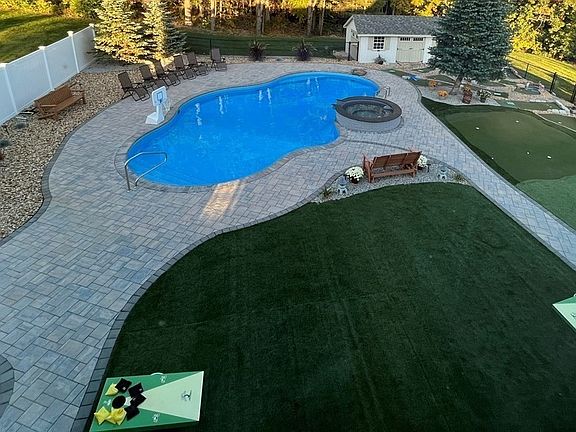 Highest & Best by 6pm 02/17. Private cul-de-sac location in Rawson Farms that has to be seen to fully appreciate the quality, details, & craftsmanship! This property has stunning water views of Webster Lake. An entertainer's dream with an incredible back yard oasis. 23X42 heated saltwater inground pool, overflow spa, and your very own 9 hole mini golf course! Cabinet packed & timeless custom kitchen w/ character cherry cabinetry, granite counters, large island, 2 sinks, and stainless appliances. 50 yr architectural shingles, hardie siding, azec trim, composite decking, landscape lighting, are just some of the many exterior features. Inside, enjoy Open concept Kitchen & Family rm, Radiant flooring, Gleaming Hardwoods, Central air, Buderus furnace, gas fireplace. Upstairs, retreat to your spacious Primary suite w/ scenic Lake views, walk in closet w/ custom cabinets, & a lovely primary bath. 2nd floor laundry, bonus space that could be a 4th BR, & a walk up attic. This home has it all!