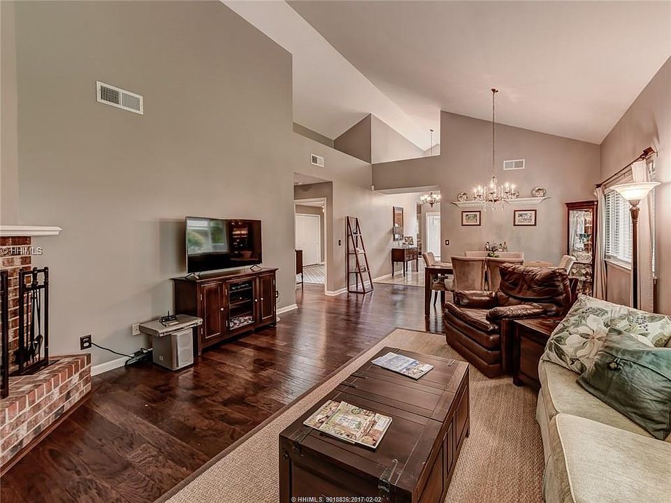 A private & quiet street, no thru traffic, close to the new HHP pool everyone is talking about, PLUS it overlooks the 5th hole of the Dolphin Head Golf Course! This charming home has a wonderfully remodeled interior, is filled with natural light, has an all-new screened porch and an inviting grassed yard. The inside features a raised hearth masonry fireplace, updated LG & Bosch kitchen appliances, engineered "hand scraped" wood floors, volume ceilings, solid core doors, and updated bathrooms. All this plus hurricane panels, irrigation, garage, landscape lights, and new fiber optic connection.
