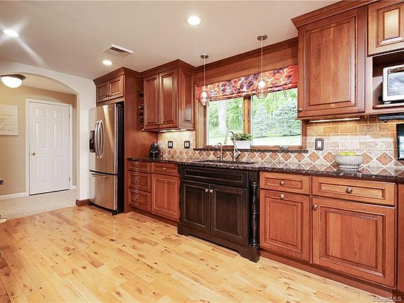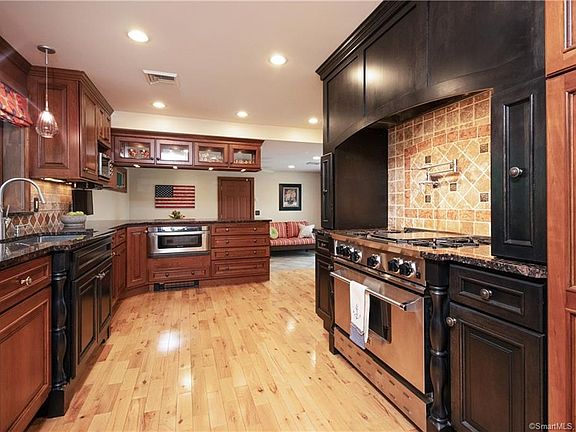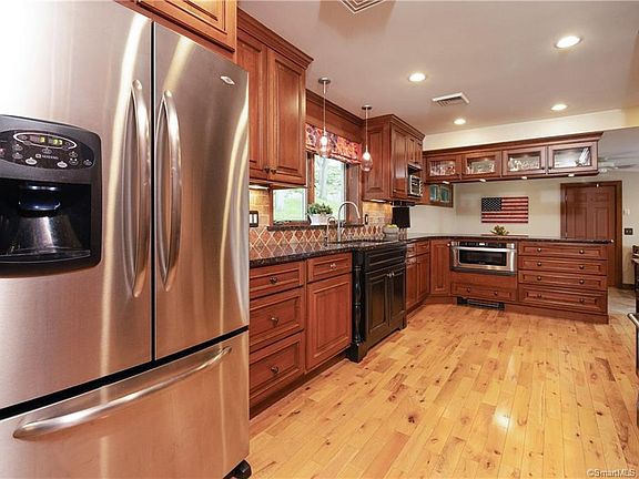 Exceptional sprawling Ranch with expansive western exposure views from the charming, open airy living/dining room with cozy fireplace, the inviting 31x20 deck off the country kitchen, the private 26x10 deck off the stunning master bedroom suite with vaulted ceiling, beams, custom walk-in closet and relaxing in the hot tub on lower level patio off the welcoming Recreation room with wet bar, beverage cooler frig and dishwasher. The updated kitchen features granite counters, tumbled marble backsplash, propane range, pot filler and spacious dining area with sliders to deck. Separate Master bedroom suite has well appointed Master bath with hydro-air soaking tub, spa shower, double vanity sink and heated tile floor. Three generous bedrooms,a full bath with hydro-air tub/shower, double vanity and a half bath complete the main level. The lower level features a family room with fireplace, an office, exercise room with rubber mat flooring, Rec/Playroom, laundry room, full bathroom, walk-in storage closet, workshop area with utility sink and storage space. Interior features gleaming hardwood, tile and ww carpet floors, 5 zone radiant heating system, Buderus Boiler, and central air. Attached 2 car garage w/auto door openers. Enjoy the Front yard patio with fire pit and mature plantings. Pride of ownership abounds in this pristinely maintained home. Truly move-in ready. Minutes to New Milford Green, shopping, and restaurants. See this property now!