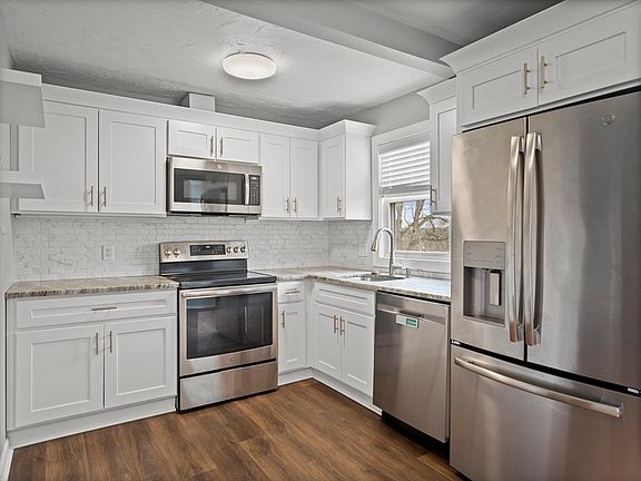 Beautifully Maintained 7-Room Oversize CapeCharming and full of character, this spacious Cape features hardwood floors throughout most of the home and thoughtful custom details. The updated eat-in kitchen includes granite countertops and stainless steel appliances—perfect for everyday use and entertaining.The flexible first-floor layout offers a bedroom, full bath, and bonus room ideal for a dining area, home office, or study. Upstairs you'll find additional bedrooms and an updated half bath.Enjoy ample parking with a one-car garage and a five-car driveway. The open backyard provides plenty of space for outdoor activities and gatherings.Conveniently located near Routes 190 & 290, shopping centers, and UMASS Medical, this home offers both comfort and convenience.Schedule your private showing today—don’t miss this unique opportunity!