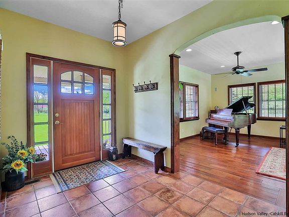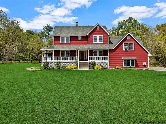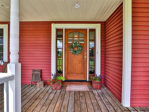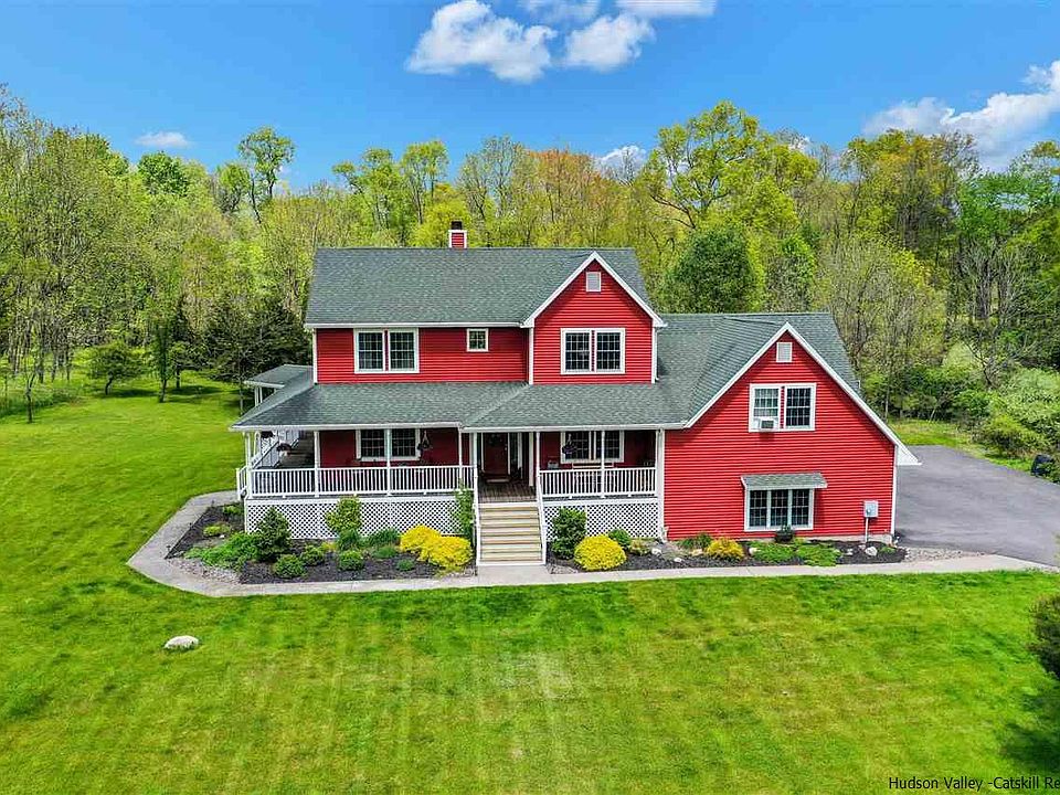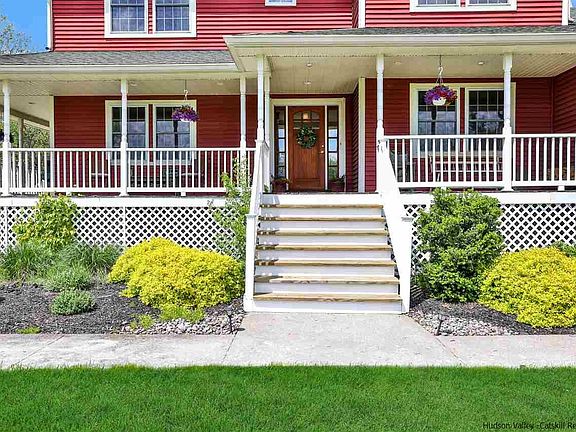 At the foot of the Shawangunk Mountains and minutes from hundreds of miles of open trails, this unbelievable 4-bedroom, 4.5-bathroom farmhouse colonial is the definition of an upstate retreat. This truly magnificent home sits on 2.46 private acres in the shadow of the Mohonk Preserve. The open layout offers clean, crisp lines with sprawling space to entertain, or simply relax after a long day of outdoor adventures. Minutes from the vibrant center of Gardiner, this quaint town features farm-to-table eateries, distilleries, beautiful wineries, coffee shops and rail trail access. The home is perfectly sited and set back from the road, offering ample interior and exterior living spaces, with a massive wrap-around porch, the perfect outdoor space to unwind or dine al fresco. The gorgeous and grand entrance leads into a sundrenched entry foyer with radiant heat throughout the home. The space flows impeccably into an open concept living room with woodburning fireplace, generous dining room with large windows and French doors, and gorgeous custom country kitchen with center island, overhang for dining and breathtaking brick accent features. The main floor also features a formal sitting room, half bathroom and ground-floor guest suite with bedroom, living room and full bathroom. The beautiful wood staircase leads to the second and third story, where you will find three bedrooms with two additional full bathrooms, in addition to a breathtaking and oversized primary bedroom suite with ensuite full bathroom, featuring a double vanity and a private yoga studio/office space. The massive unfinished basement is presently being used as a game-room, with ample storage space that can easily be finished. This beauty also features a three-car garage and a private mud-room entrance, which is the perfect space to store all of your gear. The grounds here are meticulously maintained and geared towards outdoor enjoyment, with easy upstate living at the heart of the home. Live, work and play at this Hudson Valley home.