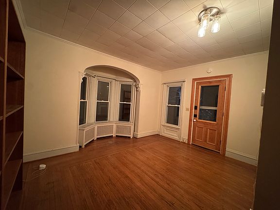 Theres a cozy living room and a Victorian dining room with East-facing windows. FIOS internet included. Original hardwood floors and plenty of natural light. There's a shared front porch, laundry room, and backyard with a fire pit and a forest access.