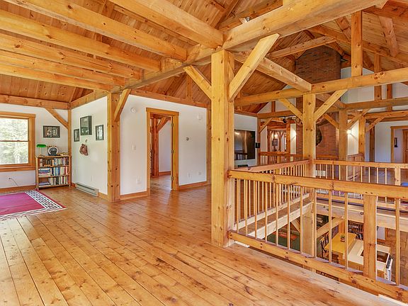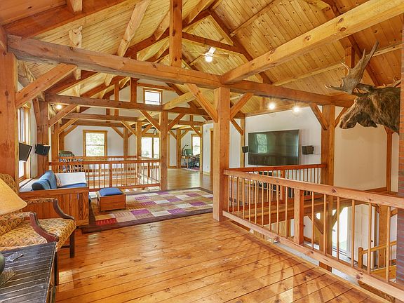 Wow! Price Reduced, this is the private Lakes Region home you've been searching for! Romantic wood burning fireplace and snowmobile trail access right from the house. Stunning, expansive timber-frame 4-bedroom Gilmanton estate on nearly 20 acres, featuring trails, campsites, fruit trees, picnic area, and more. Enjoy this meticulously maintained property with space to roam, entertain, or relax in peace. The flexible floor plan offers abundant natural light and high, beamed ceilings throughout. A two-story, brick fireplace anchors the living space, visible from both floors. The kitchen boasts an island with a cooktop/oven, room for stools, and a peninsula. Custom wood cabinets provide ample storage. The dining area fits a long, farm-style table for gatherings. A sunroom overlooks the backyard, while a sunken family room is surrounded by sliders. Each floor has a full bathroom. Upstairs, four spacious bedrooms await. The primary suite features a vaulted ceiling, walk-in closet, and direct access to the bathroom and laundry. The second floor includes space for an office or sitting area. Pull-down stairs lead to a full attic loft, ready to be finished. The full, walkout basement offers extra potential. The heated, oversized garage fits four cars, a boat, or an RV, with loft storage. Two parcels, one 16 acres and one 3.86 acres, share current use; the smaller can be built on. The property is generator ready, and has proximity to the lakes and mountains for outdoor enthusiasts.
