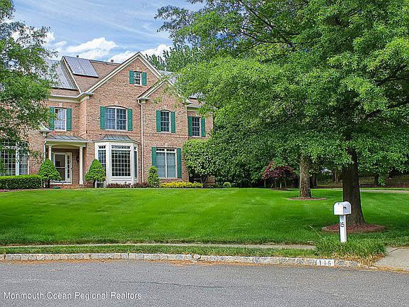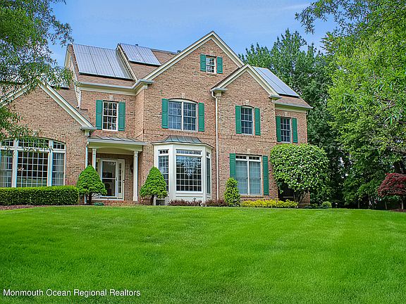 Sitting on top of the hill on almost 2 acres in a cul-de-sac in sought-after High Gate community. This stunning south-facing sun-drenched home offers open-concept living with Gourmet Kitchen & Breakfast Nook, Butler's Pantry with wet bar, 2-story Great Room with wall of windows connects to a Sunroom overlooking the private rear yard. 2nd Staircase to bedrooms. The owner's bedroom suite features 2 walk-in closets & a luxurious bath. Three spacious bedrooms with walk-in closets include a private bath, a Jack & Jill. Finished Walk-Out Basement has large Rec area which includes a dance floor, Full Bath, & huge storage. Energy-efficient Solar Panels will save you money for years to come! Public sewer & water, top-rated Holmdel schools. Convenient for Commuting, Shopping, Restaurants & Beaches