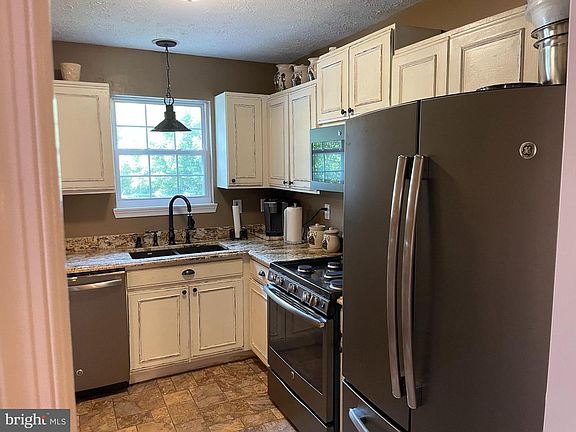 Adorable & REMODELED into a cozy, RUSTIC getaway situated on a corner "OASIS" naturally fenced w/ covered TREX DECK, perennial gardens, pergola w/flagstone patio, & an adorable shed w/ELEC. In 2014 a Lg. LL Master BR w WALK IN closet w/BUILT INS & Full Bath was added, KIT updated w/ refinished cabinets, GRANITE & new SLATE GE appliances & NEW Carpet... New Roof in 2010. Corner Lot. No Showings until July 17th.