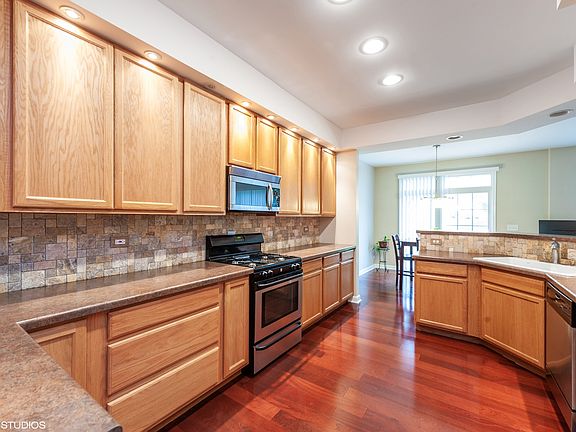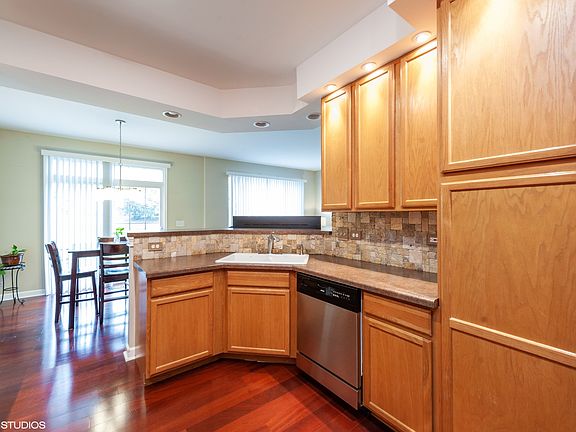 Gorgeous light & bright 3 bedroom/2.1bath/2 car garage townhome on private cul-de-sac in Winding Creek. No basement. Beaming mahogany hardwood floors throughout lower level. Open kitchen has ample counter & cabinet space with 42' cabinets. Ambient custom lighting over KitchenAid cabinets & breakfast bar & SS appliances. Living room has tiled gas fireplace & entertainment niche above. Sliding glass door off dining room leads to private landscaped patio with beautiful green area. Huge master suite w/walk-in closet has generous closet space & master bath designed with waterfall faucets & spa tiled shower w/glass door. 2 additional bedrooms with full bathroom + convenient laundry room. Newer furnace last 2 years, Hot water heater Spring 2020. Newer Garage door Spring 2019. Newer roof & siding last few years. A must see! Will not dissapoint.
