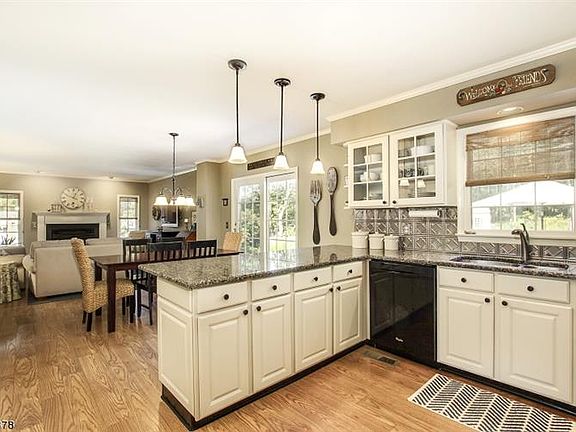Turnkey 4 BR, 2 1 2 bath colonial on picturesque property. Professionally landscaped w beautiful paver walkways and stone retaining walls. Stylish kitchen w white cabinets, granite counters, recessed lighting, backsplash and breakfast bar. Sliders off kitchen lead to beautiful paver patio w IG pool, professional landscaping, beautiful stone retaining walls, aluminum fencing great for pets, and spacious shed that could double as your pool house. Kitchen opens to FR w WBFP w wood and slate surround. DR and LR w crown picture molding, HWF, and great natural light. Spacious MBR w WI closet, full bath, crown molding and ceiling fan. MBR w silestone counters. New carpet 2nd floor. Anderson windows. Laundry located on first floor.. Remodeled main bathroom with quartz counters and soaking tub. Newer HVAC and H2O heater.