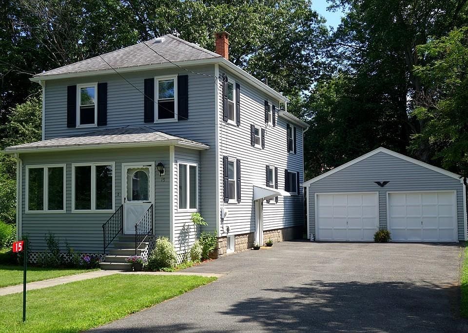 In-town, New England Charmer, sited on a sunny lot, in a centrally located neighborhood, called 'Crow Hill,' within walking distance of the Amherst Regional Middle and High Schools & Amherst Center! Lavished with TLC, this one owner Colonial with large two car, detached garage and loft storage, comprises 1392 square feet with three season, enclosed porch along the whole front of the house. The main floor decked out with new oak floors features foyer entry, a living room and dining room separated by a beautiful oak column divider, a large kitchen and half bath. Four bedrooms including a spacious master (later addition to the house) and full bath occupy the 2nd floor. Perks include many recent improvements: central A/C; re-asphalted driveway; interior painting; refurbished bathrooms (new toilets & re-glazed tub/shower + new hardware); electrical work outside and in; all new light fixtures, landscaping, etc.