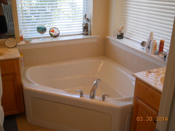 2 walk in closets in master bedroom. Garden tub and separate tile shower and 2 separate sinks with mirrors in master bathroom. Sliding glass door from master bedroom to screen atrium patio with small pool. Sliding glass doors from livingroom to same screen patio. Stainless steel appliances and granite counter tops with breakfast bar. Laundry room with sink. 2 car garage with entry into laundry room. Replaced HVAC 2 years ago.Tile floors throughout the house. HOA maintains yard and landscaping and pool. CURRENTLY HAVE AN OFFER PENDING FOR THIS PROPERTY