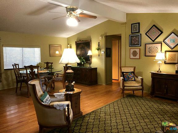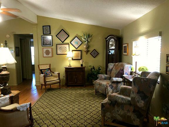 Priced to sell, here is your opportunity to live in one of the nicest 55+ manufactured home parks in the valley, in one of the best locations within the park! This fine home is in a quiet location with a south-facing backyard that borders the Cathedral Canyon Country Club, and offers stunning views of Mt San Jacinto to the west. The home has two usable carports. One carport area has a tiled section for use as a private outdoor dining space. The interior of this 3 bed/2 bath home has a master with en-suite bathroom and walk-in closet on the back side, and two adjoining bedrooms and guest bath at the front, separated by a spacious living/dining room area. The kitchen was remodeled within a few years of the last purchase in 2002. New water heater and electrical breaker panel installed in 2017. HVAC system is 10 years old and had a complete maintenance service in 2017. Swamp cooler is 6 years old. Roof is 10 years old.