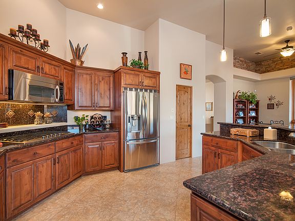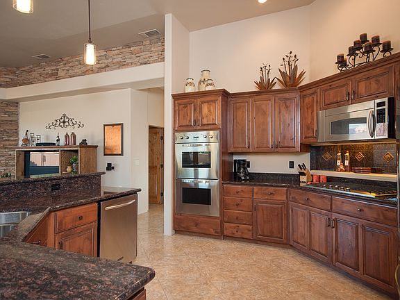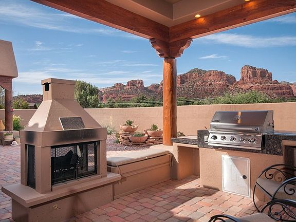 SUN-UP RANCH... . Spectacular Southwest style home on 1.01 acres provides generous living indoors and out in a first class lifestyle. Just under 3500 SF, with 4 BR/4 BA, 3-car garage, and large enclosed courtyard with built-in BBQ, fireplace and unblockable Red Rock views. Gourmet Kitchen with granite counter-tops, high ceilings with stacked rock soffits, Great Room w/fireplace, Formal Dining Room, Study/Den which opens to back patio, built-in speakers, dog run and much more. MLS# 504284. MUST CALL FOR APPT. Gina Tartamella 928-202-1328