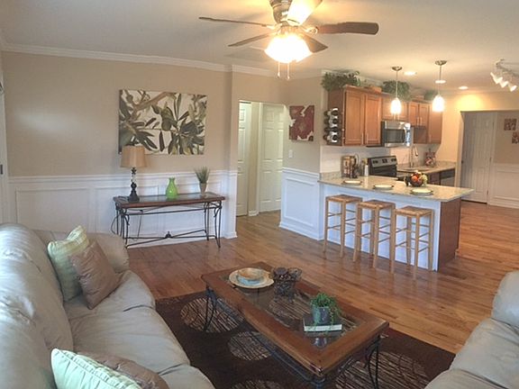 Beautiful 3 bedroom, 2 full bath rancher. Eat in gourmet kitchen with granite counter tops, stainless steel appliances, breakfast bar, & cherry wood cabinets. Hardwood flooring throughout living room & kitchen, wall to wall carpeting in bedrooms, Jacuzzi tub, & two car garage.