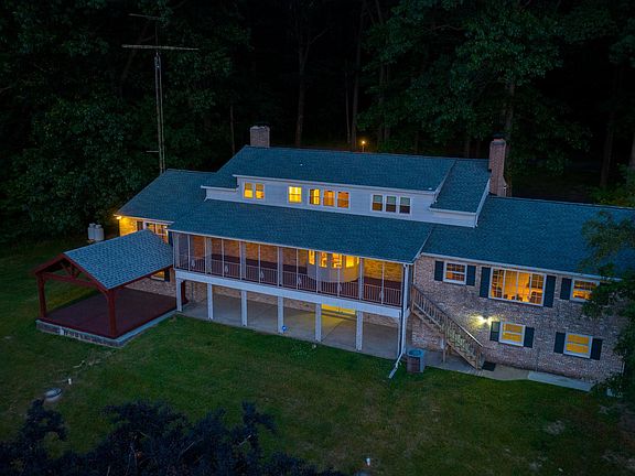 This beautiful all brick two story colonial is a must see! Situated back a private lane on almost an acre of land, you will be in awe of the peace, tranquility and magnificent panoramic views. This home has it all for indoor and outdoor entertaining. Flagstone walkways lead you up to the covered front porch. Spacious foyer with tile floors and crown moldings. Formal dining room with custom built-ins, tile floor and crown molding. The family room is oversized yet cozy with the pellet stove w/ stone surround and huge window to enjoy the views for miles. Eat in kitchen with crown molding, granite counters and plenty of cabinet space. First floor primary bedroom has hardwood floors, a wood burning fireplace, custom lighted display cases and wood plantation shutters as well as a massive custom walk in closet and spa light. Primary bathroom with walk in shower, whirlpool tub and dual vanities. Finishing out the first floor is an office with custom built-in desk and entertainment center plus a half bath. The second floor offers two large bedrooms with hardwood floors, Jack and Jill bathroom and an additional room that would be a perfect game/play room or storage. The walk out finished lower level has tons of possibilities with over 1400 sqft of finished space that includes an additional bedroom, full bath and storage. Oversized side load 3 car garage, wrap around driveway, 44x12 screened in patio off the first floor, brand new 21x20 covered pavilion and a generator. This home has seclusion, privacy and convenience, which is hard to find! Schedule your private showing today!