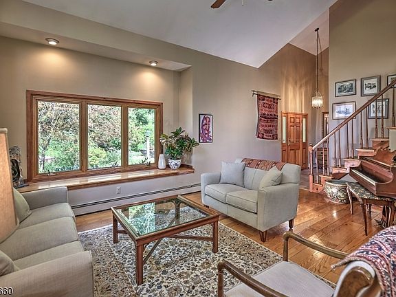 Tremendous natural setting in sought after Tewksbury location. Cross the spring fed creek and enter this relaxing and private oasis. This custom built, open style contemporary home offers 3 bedrooms, two full and two half baths, a finished walkout basement and a spacious deck overlooking the private grounds. This home has an open and bright floor plan with spacious rooms and cathedral ceilings. Second floor features a large primary suite with en-suite full bath, two additional bedrooms and a home office. The fully finished walk out basement includes an additional half bath as well as bonus room, rec room & storage. Fabulous private views out every window Minutes from Oldwick, major highways and amenities. Top-rated schools