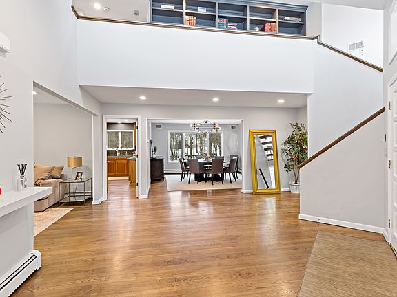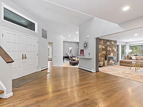 Beautiful contemporary home with a circular driveway on 2 level acres on a cut-de-sac street in Armonk. Newly refinished hardwood flooring throughout, interior and exterior recently painted, new hot water heater, and two floor to ceiling stone fireplaces. Natural light pours into this home with an open layout perfect for entertaining with an office on the first floor. Large EIK with cherry cabinetry and granite counters opens to the Family room with SGD to the deck. The lower level has a finished playroom/family room with doors to the new stone patio. Master bedroom suite with a dressing room/closets and an updated master bath. Close to schools, village and the North White Plains train! Don't miss this special home!