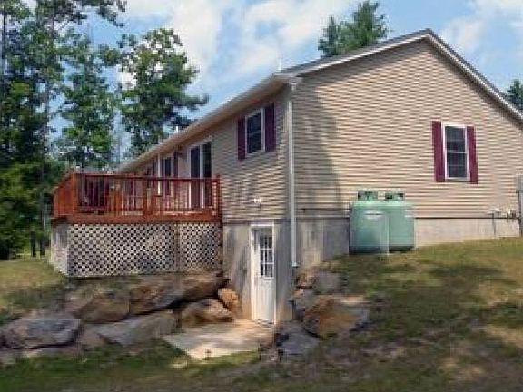 This 2 year young ranch style home is located in an area of new construction higher priced homes. It offers a large eat in kitchen with dining area, living room with hardwood floors, two master suites on each of the house. The master bedroom is 27' long and could easily be converted into 2 bedrooms making this a 3 bedroom / 2 bath home. Central air for those hot summer days and a pellet stove for the cold winter nights. Very economical heating with LPG FHW system. Huge basement for future expansion for a family room, game room etc. The seller's loss is your gain.
