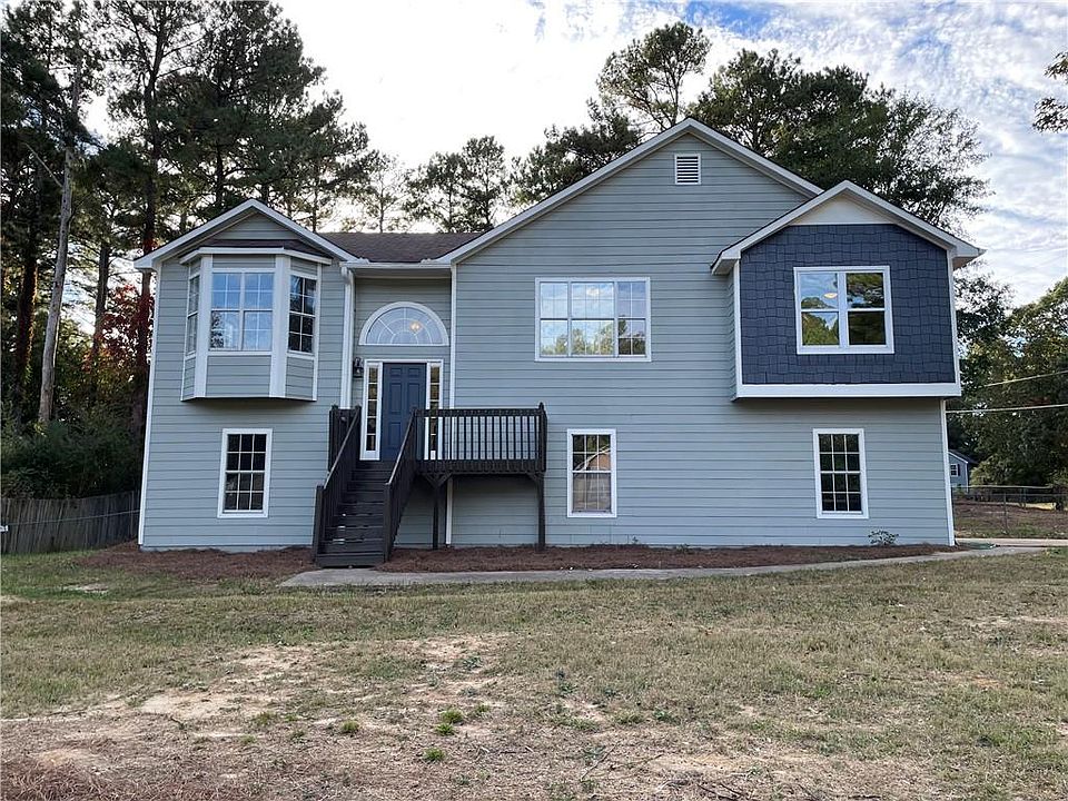 Total Renovation & Move-In Ready split level home in beautiful Douglasville. Gleaming new LVP hardwoods throughout add warmth and  seamlessly connect each living space with ease. The living room and dining room connect to the kitchen. From the kitchen/dining a door leads to the serene back deck overlooking the yard, ideal for entertaining, grilling or relaxing. Beautiful new kitchen features large granite counter tops, white cabinets with brand new appliances(Range, Dish washer and Microwave). Bathrooms are finished with new tile on the flooring with new vanities. New plumbing through out the house, with a brand new Water heater. Basement finished with bedroom, sitting room/media and bathroom. New fixtures through out the house.