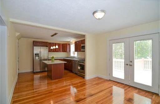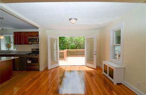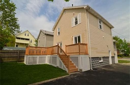 Sunny Renovated Colonial, walk to Tufts and close to major routes. New Cherry/Granite/Stainless Kitchen. Renovated full bath with jet tub, and new half bath. A really nice Walk-out deck and pretty yard, ideal for the summer BBQer or pet lover.. Glowing Hardwood thru-out.. Open floor plan, main level. New gas fired heat....Parking, outdoor space, storage and location............. Move right in!! Offers, if any, presented Sunday evening after 6pm..