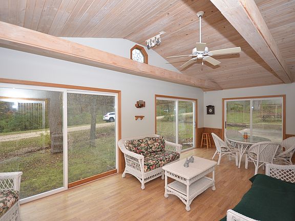 Fantastic opportunity to own your very own vacation home by Lake Thunderbird - less than 2hrs SW of Chicago! Nestled in a beautiful serene setting on a court surrounded by nothing but beautiful nature and lots of trees. Private and quiet lets you get away from all the city noise & traffic. Go swimming, fishing, boating, hunting or simply tour the area by hiking in the local mountains. Relax and enjoy your morning coffee in the heated Florida room that give you nice view of the area. This home features 2 bedrooms, nicely equipped kitchen, dining area, a large room, full bath with laundry. 2.5 car detached garage is heated and is tall enough for a boat. All appliances are included. Newly painted. Furnace, A/C are 2 yrs old and all siding is brand new. Approx 2 hours driving from Chicago, 1.5 hrs from Naperville. Close to highways, I-80 W to Rt 39 South. Quick close available, move in ready. All furniture for sale too. Sold together with open lot located right next to this property