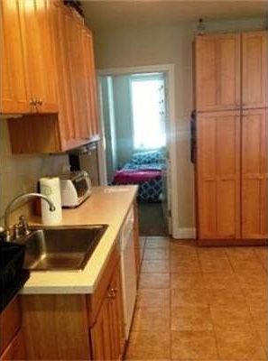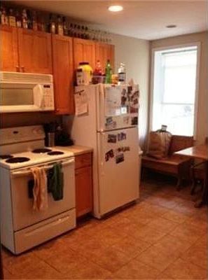 Ideal neighborhood location close to comuter rail, routes & steps to neighborhood bakery and restaurants. Ceramic kitchen floor, maple cabinets, maple pantry closet, micro wave.Ceramic bath. Recent windows & recessed lighting through out the apartment. Basement bonus room. Washer and dryer! Sun drenched. Sorry No pets or smokers.