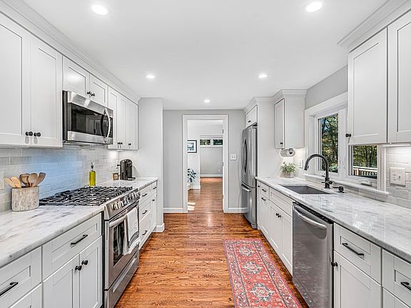 This stunning, fully renovated Ranch offers too many updates to list - completely renovated kitchen & bath, refinished hardwood floors, newer exterior paint & roof, newer back deck w/slider, new well pump & electric water heater. Enjoy all of this & more plus the luxury of 1st floor living w/a grand backyard! Meticulously cared for & full of charm, this home is perfect for both family life & entertaining. The family room is the heart of this home, showcasing a soaring vaulted ceiling. The open concept dining area is warmed w/a perfect view of the feature fireplace. A perfect spot for memory making! The gorgeous kitchen features a chic color palette that lends a clean & current style. Both bedrooms sing w/natural light ensuring a comfortable oasis for relaxation! The living room would also make a fantastic home office or playroom, totally separate from the rest of the main living space w/direct access to the back deck! Close to conservation trails, commuter rail & AB schools!