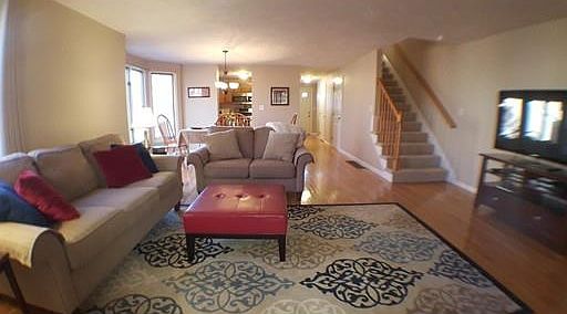 Stop looking...you'll feel like you're home once you see this property. Single family living in this attached (condex) style home. Well maintained property features: living area spaces and bedrooms are very light/bright. Finished basement area is perfect extra room for game room or office. 3rd floor has potential for more living space, or additional bedroom. Stainless steel appliances(stove, dishwasher and microwave), and hardwood floors, Natural gas heating, central air, town water and sewer. Landscape and groom your own exclusive area of yard to your heart's content, maintained by each owner. Enclosed screened porch for cool summer nights, overlooking private yard. This is one of the best lots in the subdivision, located on cul de sac.This well established, desireable neighborhood is minutes to commuter rail, town center and Rte 95 & 495. No homeowner fees.