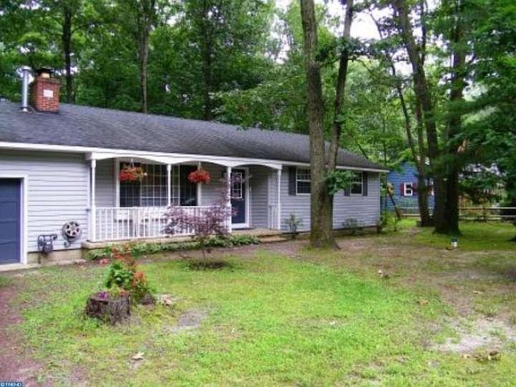 Cozy ranch style home located in scenic Rancocas Woods. Home has 3 beds, 1.5 baths and sits on a fenced in, wooded DOUBLE lot with 2 sheds (one has electric and propane heater). Living room features laminate flooring, hardwood underneath, exposed beams along with a stone and a wood burning fireplace. The kitchen has been upgraded, cabinets, counter and stainless steel appliance all BRAND NEW! There is a 4 season sun room off of the dining area perfect for office or a den. Home also features a large front porch, huge deck in the back, heated attached garage, crawlspace with concrete floor, hardwood floors in the bedrooms (one has carpet, wood underneath), partially floored attic for storage, updated electric, newer central air (5yrs), well re-drilled in 2004, vinyl replacement windows and maintenance free vinyl siding. All appliances are included as well! In walking distance to shops, and conveniently located near Rt. 38 or Rt 295. Put this on your must see list!