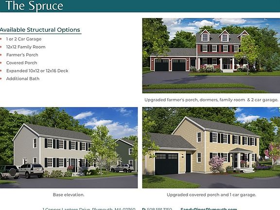 Starting at $479,900! Live in a private cul-de-sac in South Plymouth at the new Sandy Pines Development, a mix of townhouses and single family homes. Tree-lined street, central playground, and a great location 5 minutes from the highway! Brand new construction "The Spruce" features first floor laundry with half bath, beautiful kitchen all stainless steel appliances and granite countertops. 3 bedrooms and full bathroom on the second floor. Upgrades are available. Photos are facsimile. New construction to be built, delivery March 2021. Listing for Lot 25-25.