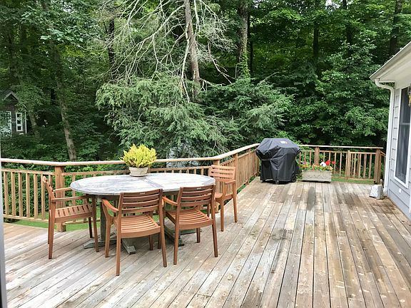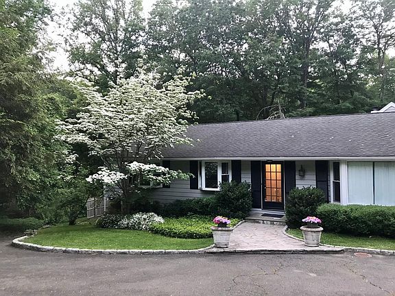 Nestled in a private, well landscaped property, this clean mid century modern ranch style home, offers a great balance of open, light filled, airy rooms with multiple quite home office work spaces. This 4895 SqFt home is surrounded by 3.17 acres of green lawns, deep wild woods with rocky outcrops and two small streams. Peaceful, natural habitat minutes from trains and planes, downtown Greenwich, Armonk, White Plains NY and 45 minutes from NYC. Large family style kitchen with distinctive Italian Calcatta marble island and countertops, flows into a sunny sunroom with wall of sliding glass doors, leading to large spacious deck to entertain, bbq with beautiful views of back garden. Large family room with cathedral ceilings, skylights and fireplace, create the perfect back drop for many family gatherings. All newly renovated bathrooms. Formal dining room can accommodate large crowds for those special meals and flows into a second living room with fireplace. Huge master bedroom with walk in closets, newly renovated master bathroom with walk in shower, skylight. Additional 2-3 bedrooms on main level with double sink spa tub bathroom. Lower level accommodates a large laundry room, office/playroom, additional large 700 ft. in law/nanny/playroom/office with small kitchen, separate laundry and a newly renovated bathroom. Large storage area and walk out to attached three car garage. Located within minutes to the Westchester County Airport, Griffith Harris Golf Course, The Brunswick and Sacred Heart schools and the Greenwich Audubon. This home, located on a quiet lane in the Back Country section of Greenwich, is a special place to be.
