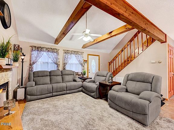 Lovingly cared for 4 bedroom, 2 bathroom home in North Pocono School District. The home is nestled on a double lot in Thornhurst Country Club Estates. This spacious contemporary features a modern kitchen & open floor plan just perfect for entertaining. Spend cozy evenings relaxing in the living room by the white stone fireplace. Wander upstairs you'll find 2 BR, 1 BA & a roomy loft ideal for an office. Use your imagination to convert the den into an incredible master bedroom suite. Outdoors you will find the ultimate space for some Grillin' & Chillin'! It features a bar area, firepit, spacious backyard & is equipped w/electricity and propane. Storage won't be an issue with 2 extra large connected sheds outfitted w/shelves. The circular driveway rounds out the property. A Must See, Beds Description: 2+Bed1st, Beds Description: 2+BED 2nd, Baths: 1 Bath Level 1, Baths: 1 Bath Level 2, Eating Area: Dining Area