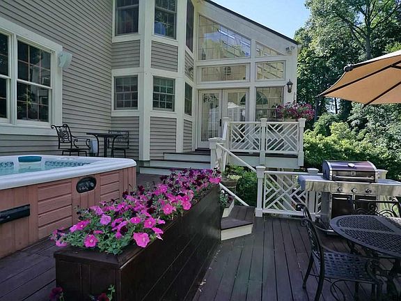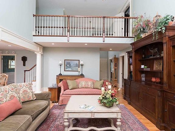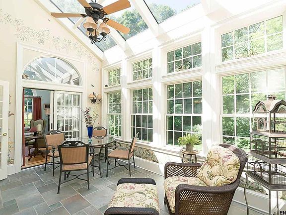 Immaculate Colonial with beautiful custom features. Chef's delight custom Zarrillo kitchen complete with designer island, pot filler & Wolf appliances. Impressive 2 story family room. Sun room with glass roof & heated floor. Walnut inlay HW floors, cedar closets, dual staircase, tray ceilings, custom moldings, 2 WB fireplaces & more. Entertain on two tier mahogany deck w/ hot tub & outdoor speakers. Finished walkout basement leads to brick patio. Private wooded lot connects to Lisha Kill Preserve