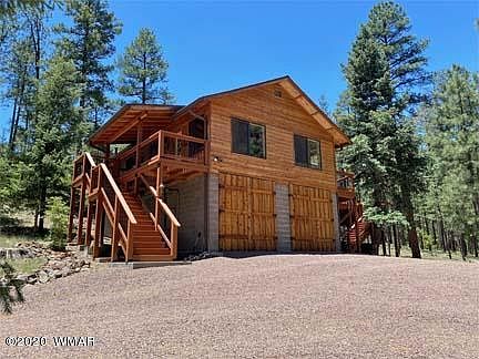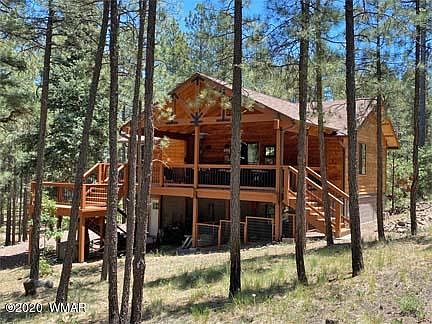 COZY ''TREEHOUSE'' WITH NICE LIGHT FOR YOUR MOUNTAIN GETAWAY. LOVINGLY MAINTAINED CABIN ON TWO LOTS WITH PONDEROSA, OAK, BLUE SPRUCE AND WHITE PINE. OVERSIZED, COVERED DECK IS THE FOCAL POINT OF THIS BEAUTIFUL PROPERTY AND DESIGNED FOR LOTS OF OUTDOOR FUN WITH FRIENDS AND FAMILY. LOTS OF INTERIOR WOOD ACCENTS INCLUDING T&G VAULTED CEILING AND WOOD DOORS THROUGHOUT; WOOD AND PORCELAIN TILE FLOORING. DEN/OFFICE/EXTRA SLEEPING OFF KITCHEN. 2-CAR GARAGE WITH EXTRA STORAGE CAN FIT YOUR RV. JACUZZI STAYS! WHOLE HOUSE BACKUP GENERATOR. YOU MUST SEE THIS TIDY PACKAGE!