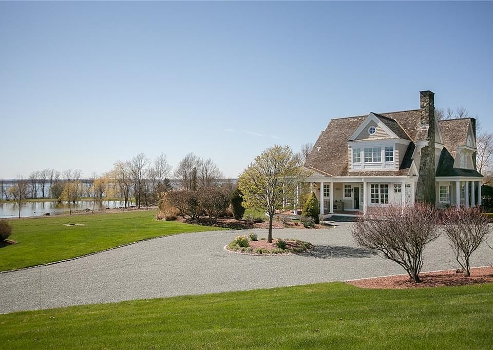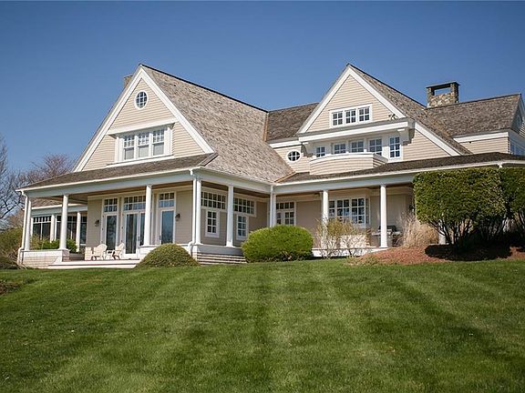 Few homes can match the grace and dignity of this custom, five bedroom residence on private, gated Poppasquash Point. Entry foyer opens to a grand central staircase with lovely gallery extending left and right. A comfortable great room with stone fireplace and coffered ceilings lies just beyond with magnificent windows and French doors leading to two-acre yard, pond and Narragansett Bay. Cook's kitchen with large center island built for entertaining with adjacent dining room and large covered dining porch just outside. There are four fireplaces, beautiful mill work, high ceilings, media room, billiards room, screened porch, multiple decks, three-car garage, lovely gardens and finished playroom in the basement. A perfect gathering place for family and friends.