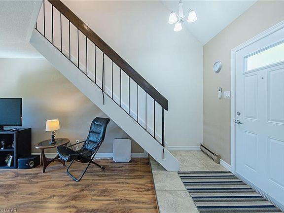 Exceptional value for this spacious 4-bedroom home on a very quiet street in a mature area of Northwest London. Lots of room for the family to spread out in this house. The large living room has vaulted ceilings and a Napoleon gas fireplace and the updated kitchen is a perfect entertaining spot with the centre island, adjacent dining space and patio door access to the side deck/backyard. The double garage was converted to the current family room and additional room with potential for home office or an additional bedroom (currently used as a storage room). Explore the possibility of converting back to a garage, should you choose. Convenient main floor laundry and a 2-piece powder room. Upstairs the bedrooms are nice sizes and the primary bedroom has a 2 piece ensuite with a new vanity and commode. It is electric heating but has two newer dual heat/cool pumps and the gas fireplace for your comfort. And let's not forget the private backyard with the 16 x 32 pool--half in ground--scheduled for opening on May 18. Or huddle around the fire pit area and create more great family memories. A great summer is in the cards for the lucky buyer of this special home in a desirable neighbourhood near walking trails, excellent schools, shopping and more.