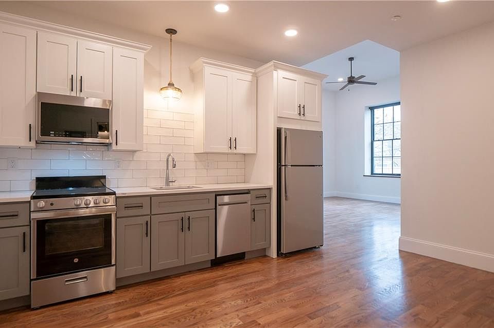 Introducing The Calvert, now available for leasing! This former elementary school has been fully renovated into modern apartments while keeping the charm of the schoolhouse. Units feature open floorplans, soaring ceilings, large windows, new kitchens with quartz countertops and soft shut cabinets, and central air. The building features basement storage and laundry, one assigned parking spot per unit plus ample guest parking. Tenants are responsible for electric, cable and wifi; hot water, water/sewer, trash and snow removal are included. No pets please. This corner unit is located on the first floor, and has two bedrooms and two full bathrooms with a main bedroom ensuite, plus in-unit laundry.