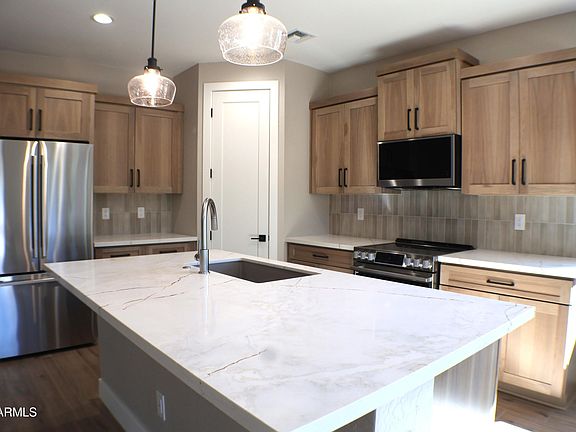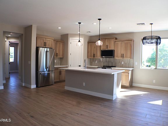 30-year financing at 4.99%. Move in now t into this landscaped home. Get out of the heat with a home in sedona. This home is on a corner lot with awesome mountain views. Buy now! This price includes all the upgrades included. Beautiful open concept with split floor plan, includes 3 beds, 2 baths, 8' int Doors, large kitchen with tile floors throughout national pine 8''x 48'', Hickory Moonlight Matte Cabinetry, della terra quartz citrine Countertops, LG Studio Stainless Steel appliances, and large kitchen island. Spacious master suite includes large tiled shower, Spray foam insulation and a large walk in closet. Serene desert oasis with breathtaking mountain views!