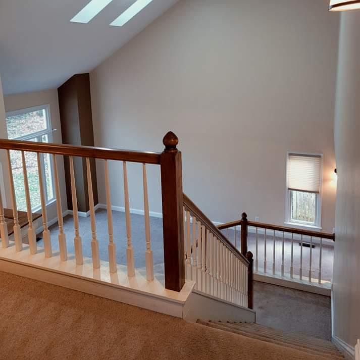 Spacious, Beautiful, 2,156 sq. foot Home found in Adams Farm Community Entrance into Foyer, living room, Dining room to your left with a Cathedral ceiling, (2) sky Lights and a winding staircase to your three (3) spacious sleeping quarters found upstairs. (Master Bedroom, 18' by 13' with adjacent sitting room with fireplace) Entrance from the Foyer, turning to your right, Door entrance to your finished two (2) vehicle garage with State gas hot water Heater. Continuing down hallway, door on your left is your lovely 1/2 bathroom for your guest. continuing straight ahead you enter the utility room housing washer & dryer and storage closet. Turning left before reaching 1/2 bath you will enter your bright sunny den with fireplace, bay windows. also, your kitchen net and food preparation area. Off the den back door provides you a Hugh deck for family gatherings. Upstairs is your master bedroom with walk in closet, full bathroom, Floral tub, shower combination. You have your own small private deck and Bonus room with its own fireplace. 2nd full bathroom down the hall that occupants of the 2nd and 3rd will share and enjoy their privacy. There is an exceptionally large storage area under the house with a 10' by 10' concrete slap. one year lease