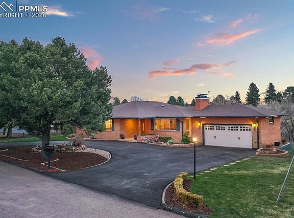 This beautiful Brick Walkout Rancher tucked away in a highly sought out west side neighborhood off the top of Mesa Rd and minutes from Garden of the Gods is one of a kind. The quiet treed street offers a slow friendly pace with no thru traffic, only your neighbors to wave. The circular asphalt driveway provides ample space for front yard gatherings having friends over. Enter this gorgeous home with a large covered entry way and planter boxes into the spacious main living room featuring a cozy wood burning fireplace. Natural light abounds with views from all windows on the main level as you ease into a custom one of a kind second dining area and kitchen. No expense was spared in the creation of these two stunning rooms. An exquisite knotty pine column and vaulted ceiling was handcrafted by local craftsmen to create a warm country kitchen and dining experience with a large bay window and multiple skylights. Special Red Fur and brick was used to compliment this one of a kind space. The kitchen offers all stainless steel appliances, featuring a double oven and wine fridge as well as a glass cooktop, custom glass cabinets and oversized kitchen drawers. From the dining area retreat to one of two decks to relax on and enjoy the ample wildlife that abounds this serene retreat. From the walk out basement you're treated to several relaxing spaces that will amplify your experience. Acustom waterfall water feature brings sounds that soothe an already peaceful backyard experience. A very special feature hidden in the backyard is a workshop, artist studio, gym or kids playroom. Creativity is sure to flourish in this spacious well lit air conditioned retreat. From the well manicured grassy backyard, meander down a custom path to the lower wooded area, relaxing in isolated serenity