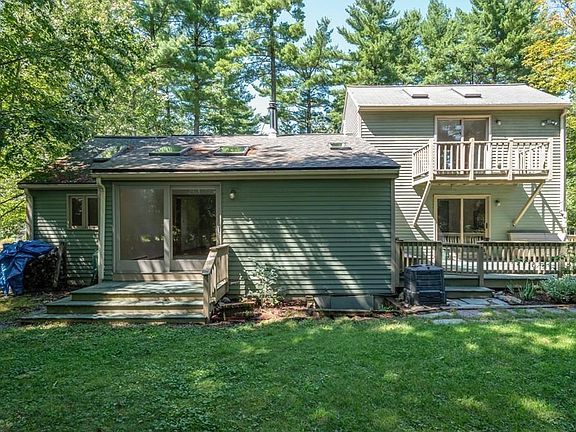 Sweet Home is everything a small home should be.This Spectacle Pond neighborhood is a dead-end street and all owners can Swim, Boat, Fish, Skate on the pond- one of our state's cleanest water bodies. Loads of natural light, boasting hardwood floors and brand new carpet, a gorgeous kitchen w/ maple cabinets, granite counter tops, & 4 year old Stainless Steel efficient appliances- even a true convection gas range! Note Kohler deep soaking tub and tile work in bathroom. Open Concept is great until you want your own space- just pop upstairs to the large MBR, or art studio with skylights, sliders, and balcony! A wonderful homesteading-ready tree lined backyard; off your deck, there are cherry, apricot & plum trees, blueberry bushes, and plenty of room to grow your own favorites too. Yummm! Electric heat in Littleton means lowest rates in the state! Alternatively, a Jotul efficient wood stove (with gifted wood) should you prefer. TWO sheds, just sayin'! Bit of exterior trim work left to do.