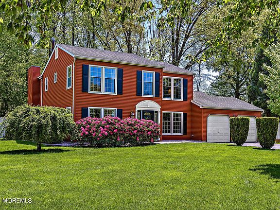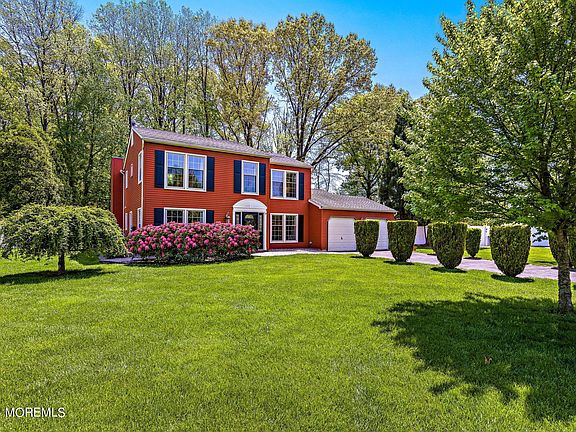 Welcome to this exquisite and meticulously maintained 4-bedroom, 2.5-bathroom center hall colonial residence nestled in the coveted town of Marlboro. This stunning home boasts large rooms with designer touches throughout, an abundance of spacious closets and is situated on an expansive, premium private wooded lot at the end of a tranquil cul-de-sac. Upon entering, you are greeted by a seamless flow of elegant spaces perfect for both entertaining and everyday living. Hardwood floors grace the entire home, creating a warm and inviting atmosphere. The heart of the home is the light-filled Chef's kitchen, complete with 27 Custom Maple cabinets, Double Thermador oven/convection/grill, high-end Stainless Steel appliances, Premium Granite countertops with Porcelain backsplash and glass insets. Enjoy breakfast with a view in the adjoining eating area while overlooking the beautifully landscaped fully fenced backyard with a stone patio, offering ample space for relaxation and potential for a swimming pool. Additional features include a temperature & humidity controlled wine room, perfect for entertaining guests or storing your favorite vintages. The second floor presents a luxurious retreat in the spacious grand master suite, featuring a marble bathroom, oversized closet, and cathedral ceilings overlooking the scenic backyard and wooded area. Three additional generously sized bedrooms, a full hallway bathroom, and a separate office with French doors complete the upper level. Full Attic with Flooring for Storage. Upgrades include new skylight and marble vanity top in second floor bathroom, newer back roof and attic fan, Pella front door, and more. Conveniently located just minutes from public transportation, diverse shopping options, and local farms offering fresh produce, this home also offers easy access to Marlboro's top-rated public schools. Wonderfully located within reach of all the amenities Marlboro has to offer, including the Marlboro Swim Club, proximity to NYC, Philadelphia, beaches, restaurants, and Monmouth County golf courses. Marlboro also offers Hiking and biking trails at nearby Oak Brook Park and Conservation, Farmer's Markets, and Summer Concerts, making it a truly desirable place to call home.