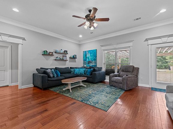 Welcome Home to this beauty on a great corner lot. The 2.80 acres are surrounded by a natural bush/tree line that blocks the backyard of the home from the main road providing desired privacy. This 4 bedroom 2 bath split floor plan home has hand scraped wood flooring and tile, fireplace, granite countertops, new stainless steel appliances including gas cook stove and dishwasher also a new kitchen sink installed all in 2023. This Gorgeous home also includes a formal dining area, a large covered back patio, private yard great for entertaining, circle drive and oversized garage. sq ft is estimated, pls measure. Please see agent remarks
